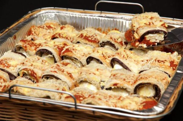 מגש 25 יחידות של חצילים מגולגלים עם ירקות מתאים לכל אירוע במיוחד לטבעונים עד 20 איש למגש.